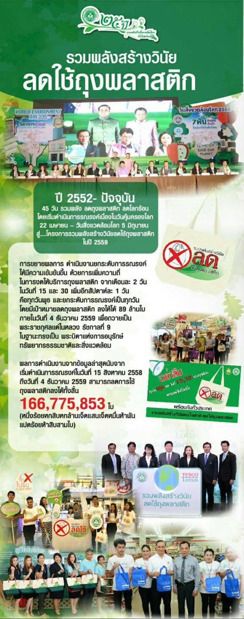 หน้าหลัก >> Knowledge >> ชุดนิทรรศการ ครบรอบ 25 ปี สส. >> จำนวนผู้เข้าชม: 1,644 รวมพลังสร้างวินัย ลดใช้ถุงพลาสติก
