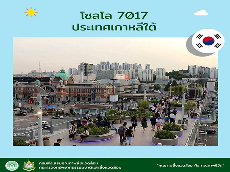 จากสะพานยกระดับที่เปิดใช้งานมาตั้งแต่ค.ศ.1970 แต่เมื่อเริ่มมีความกังวลเรื่องความเก่าแก่และความแข็งแรง ของโครงสร้าง Seoul Metropolitan Government จึงตัดสินใจเปลี่ยนมันเป็นสวนสาธารณะลอยฟ้า Seoullo 7017 ซึ่งประกอบไปด้วยต้นไม้และดอกไม้นานาชนิด และเชื่อมโยงหลายพื้นที่ของกรุงโซลเข้าด้วยกัน เพื่ออำนวยความสะดวกให้กลุ่มคนที่สัญจรไปมาด้วยการเดินเท้า