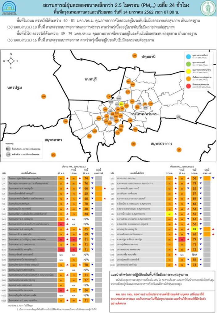 "อันที่จริง บ่ายวันนี้ (14 ม.ค.) มีแนวโน้มจะลดลงแล้ว พรุ่งนี้ถ้าอากาศไม่เปลี่ยนแปลงจะดีขึ้นอีก และอาจมีสีเขียวเกิดขึ้น" อธิบดีกรมควบคุมมลพิษ ระบุ