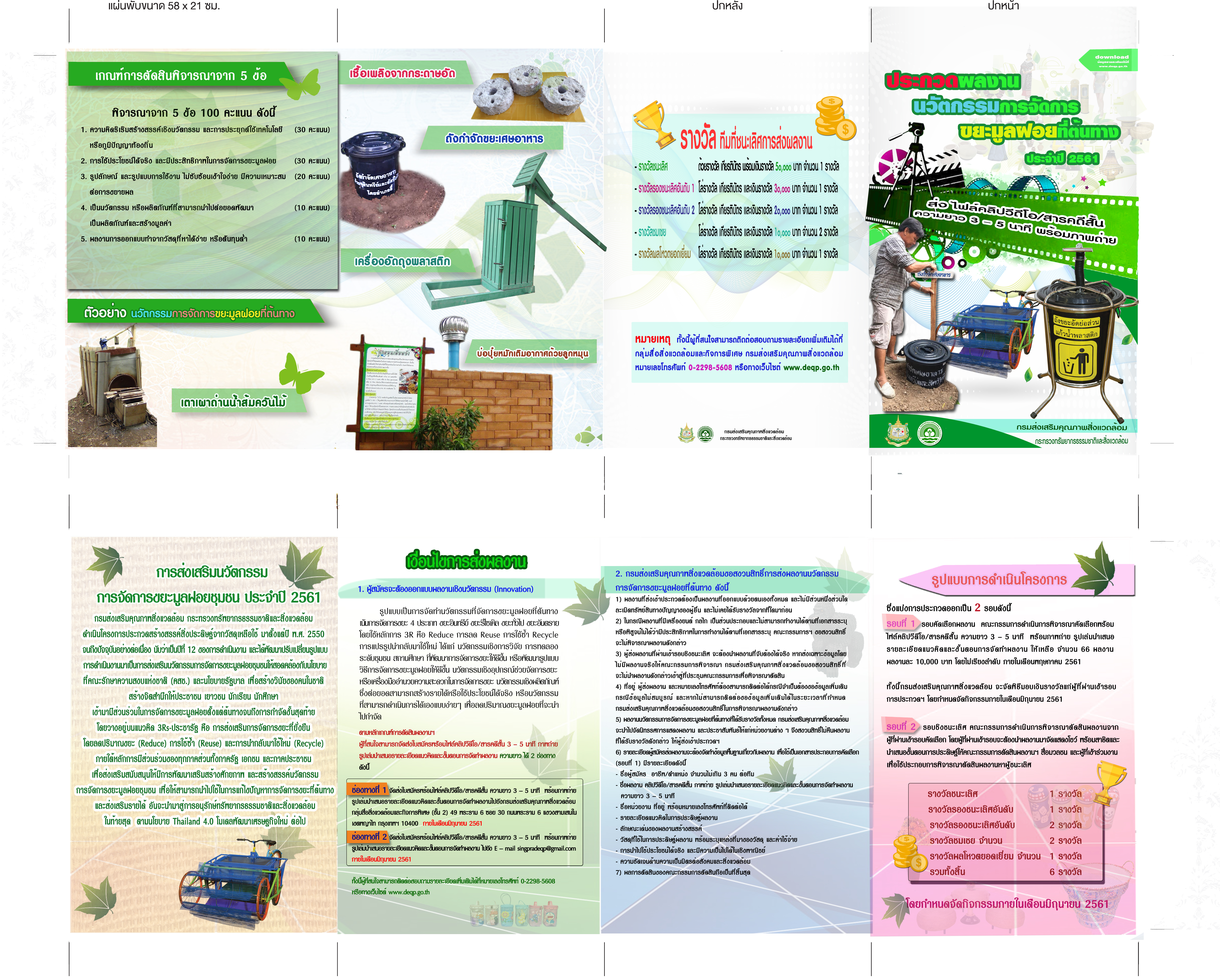 | ชื่อสื่อ : | แผ่นพับประกวดผลงานนวัตกรรมการจัดการขยะมูลฝอยที่ต้นทางประจำปี 2561 |