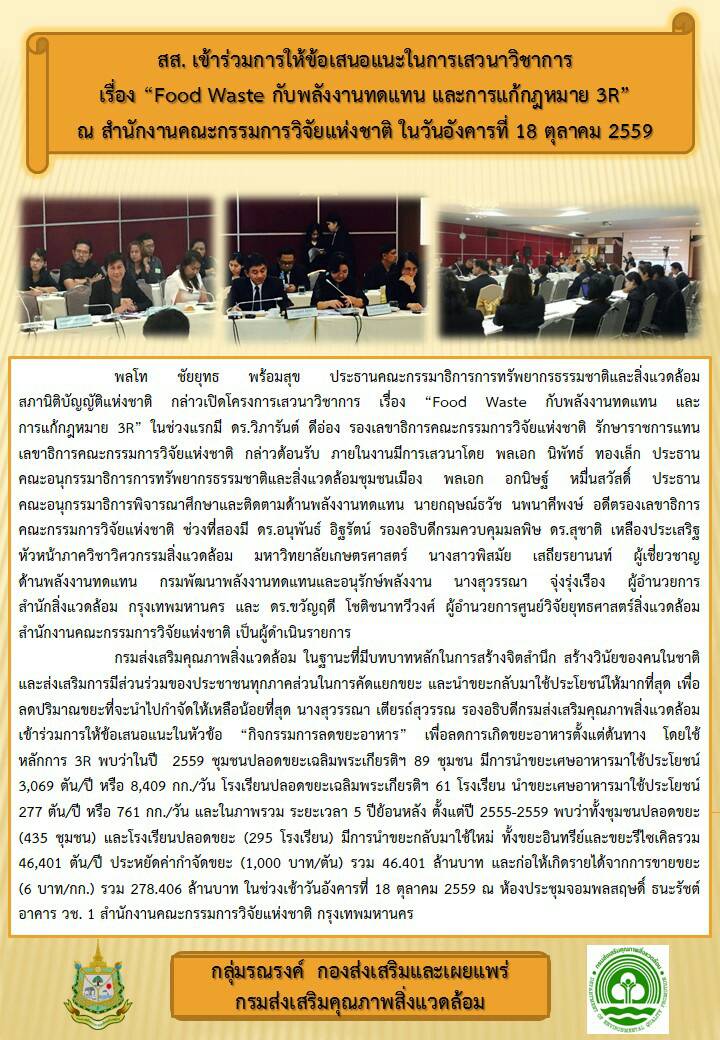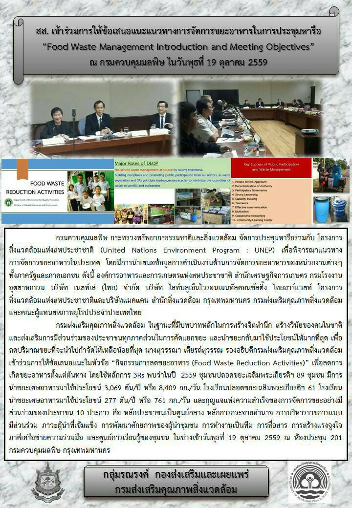 สส. เข้าร่วมการให้ข้อเสนอแนะแนวทางการจัดการขยะอาหารในการประชุมหารือ Food Waste Management Introduction and Meeting Objectives ณ กรมควบคุมมลพิษ