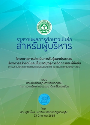 รายงานฉบับย่อสำหรับผู้บริหารโครงการประเมินการรับรู้ของประชาชนเรื่องการสน้างวินัยคนในชาติ มุ่งสู่การจัดการขยะที่ยั่งยืน