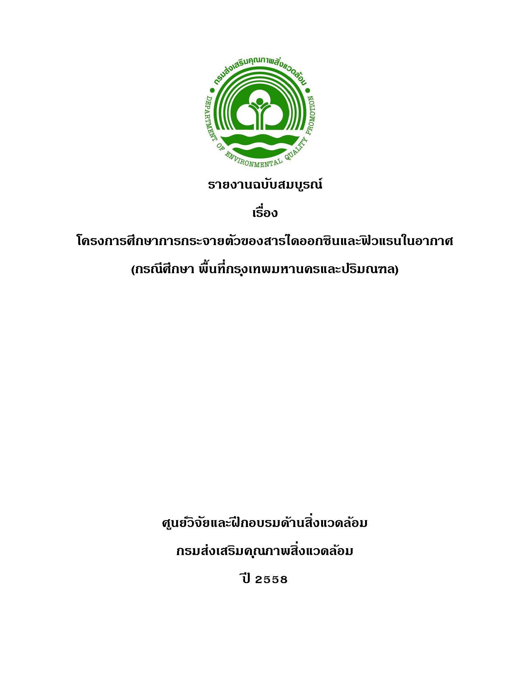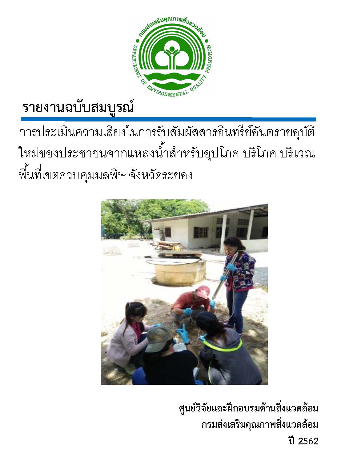 รายงานผลงานวิจัยของศูนย์วิจัยและฝึกอบรมด้านสิ่งแวดล้อม ประจำปี 2561 - 2563 ... อ่านต่อ จำนวนสต็อค : 0 รายงานการศึกษาพื้นที่อ่อนไหวด้านเสียงเพื่อจัดการปัญหามลพิษทางเสียงจากท่าอากาศยานภูมิภาค ... อ่านต่อ จำนวนสต็อค : 0 การศึกษาความแตกต่างระหว่างความเข้มข้น PM2.5 ภายในและภายนอกป่านิเวศ ... อ่านต่อ จำนวนสต็อค : 0 การพัฒนาถังปฏิกรณ์ชีวภาพแบบมีเมมเบรน เพื่อการนำน้ำกลับมาใช้ใหม่สำหรับกิจกรรมของภาคชุมชนและภาคเกษตรกรรม ... อ่านต่อ จำนวนสต็อค : 0 รายงานวิจัยฉบับสมบูรณ์ เรื่อง ประสิทธิภาพในการบำบัดเชื้อจุลินทรีย์ของระบบบำบัดน้ำเสียชุมชนในประเทศไทยเพื่อการนำน้ำกลับมาใช้ใหม่ในภาคการเกษตร ... อ่านต่อ จำนวนสต็อค : 0 การประเมินความเสี่ยงในการรับสัมผัสสารอินทรีย์อันตรายอุบัติใหม่ของประขาชนจากแหล่งน้ำสำหรับอุปโภคบริโภค บริเวณพื้นที่เขตควบคุมมลพิษ จังหวัดระยอง ... อ่านต่อ จำนวนสต็อค : 0 โครงการประเมินศักยภาพของธรรมชาติในการนำบัดพื้นฟูน้ำใต้ดินที่ปนเปื้อนสารอินทรีย์ระเหยในพื้นที่เขตควบคุมมลพิษ จังหวัดระยอง ... อ่านต่อ จำนวนสต็อค : 0 โครงการศึกษาการกระจายตัวของสารไดออกซินและฟิวแรนในอากาศ (กรณีศึกษา พื้นที่กรุงเทพมหานครและปริมณฑล) ... อ่านต่อ จำนวนสต็อค : 0 โครงการศึกษาพฤติกรรมผู้บริโภคในการบริโภคสินค้าที่เป็นมิตรกับสิ่งแวดล้อมในพื้นที่กรุงเทพมหานคร ... อ่านต่อ จำนวนสต็อค : 0 พัฒนาชุดทดสอบคุณภาพน้ำอย่างง่าย ... อ่านต่อ จำนวนสต็อค : 0 ข้อมูลทั้งหมด 80 รายการ | หน้า 1 จากทั้งหมด 8 ก่อนหน้า 1 2 3 4 5 ถัดไป