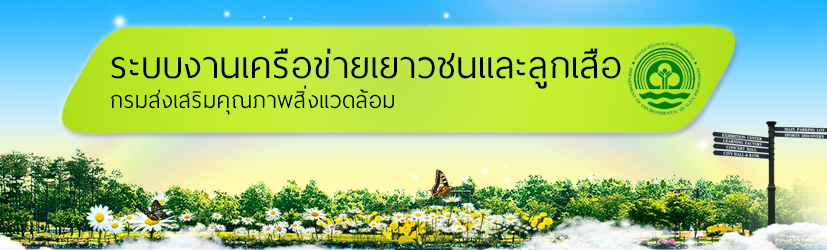 หน้าหลัก >> บริการออนไลน์ (e-services) >> ระบบงานเครือข่ายสิ่งแวดล้อม >> จำนวนผู้เข้าชม: 3,144 เครือข่ายเยาวชน