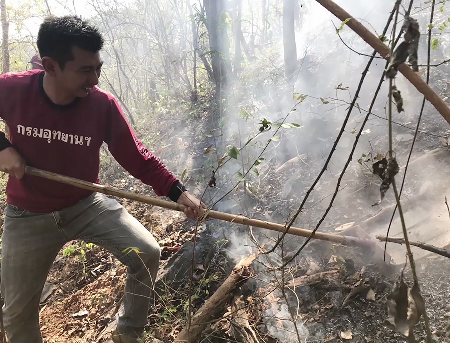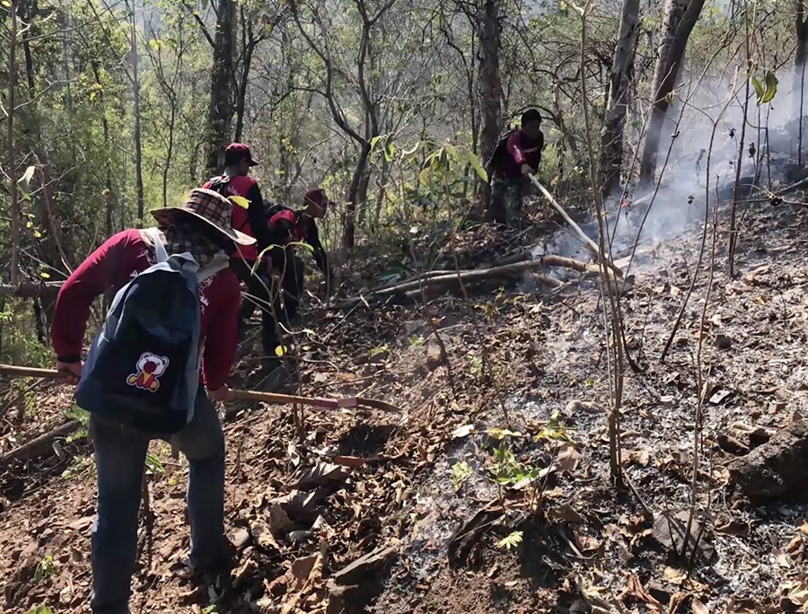 เจ้าหน้าที่สนธิกำลังลุยดับไฟป่า เขตเตรียมประกาศอุทยานแห่งชาติดอยจง จ.ลำปาง หลังพบมีคนจุดไฟเผา หวั่นค่าฝุ่นละอองขนาดเล็ก PM10 พุ่งสูง ล่าสุดควบคุมได้แล้ว เสียหาย 5 ไร่